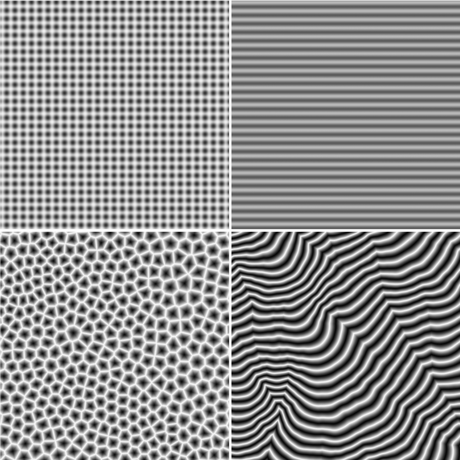 Now we’re cooking. The task has been shifted: instead of painstakingly defining how we want our shapes to behave, we just have to make a grayscale “threshold map” that will generate these shapes. Here are the ones I’ve used so far: