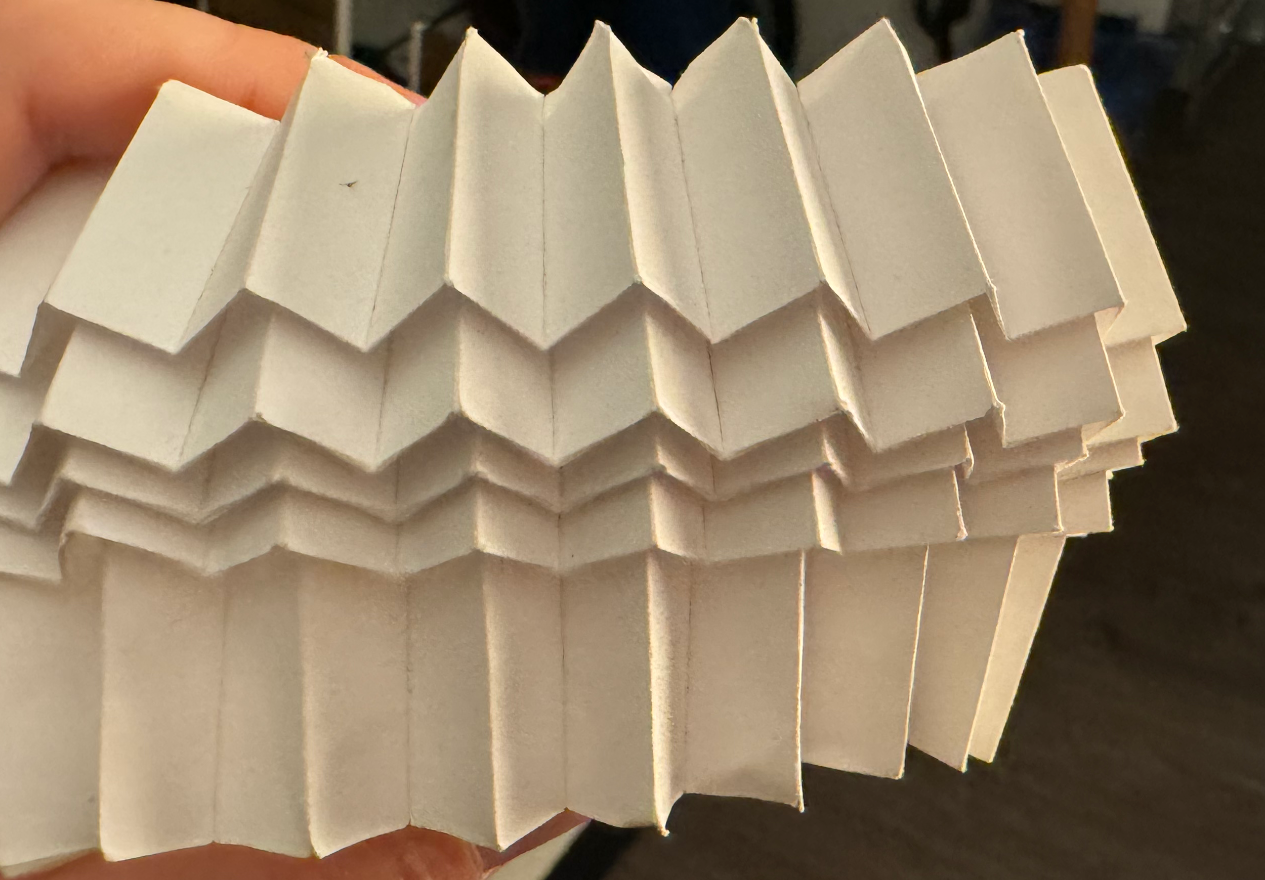 I thought an pleated pattern like this could make for a cool lampshade, and I wanted to do some experimentation with laser-creased origami. I made a pendant lamp for my apartment using this method a while ago: