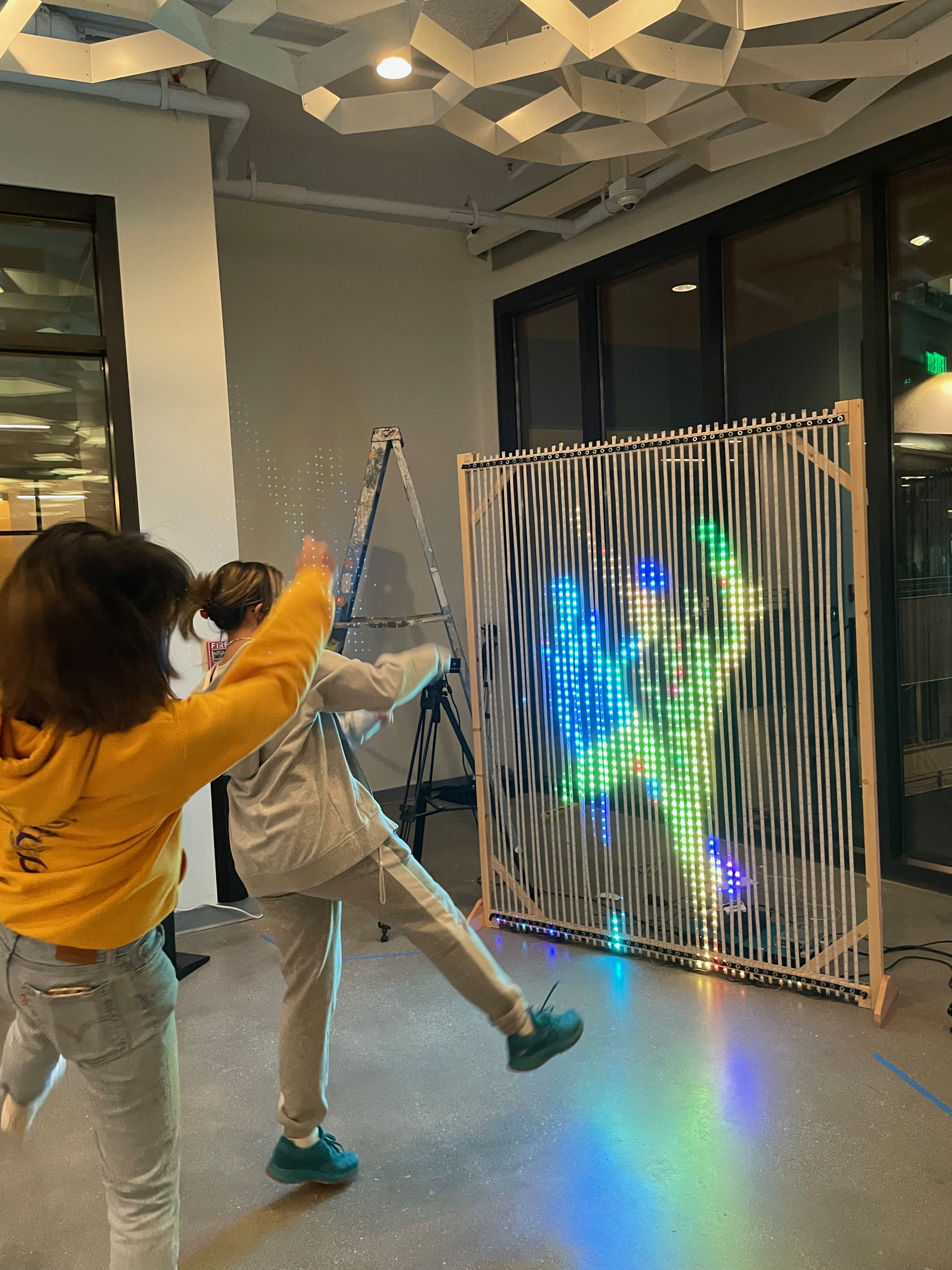 The projector was a necessity — I wanted to make a real display of course, but building one large enough was out of my budget. The project was shelved until I transfered to UCLA and started hanging out at the Makerspace. I noticed that they had a lot of NeoPixel strips — about 100 meters, worth a few thousand dollars. I asked some version of “can I use basically all of these to make this project?”, and was asked some version of “what else do you need?”.